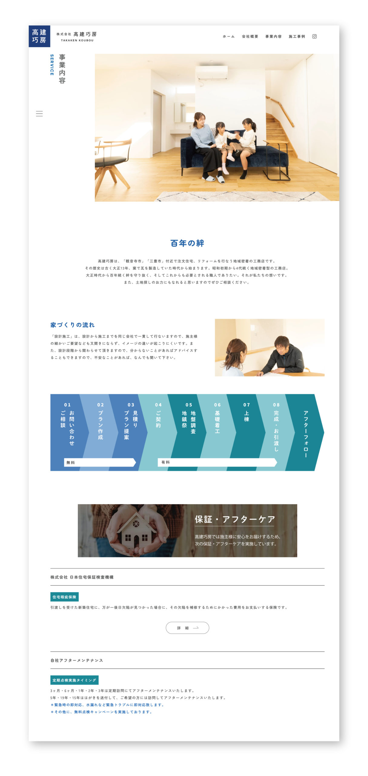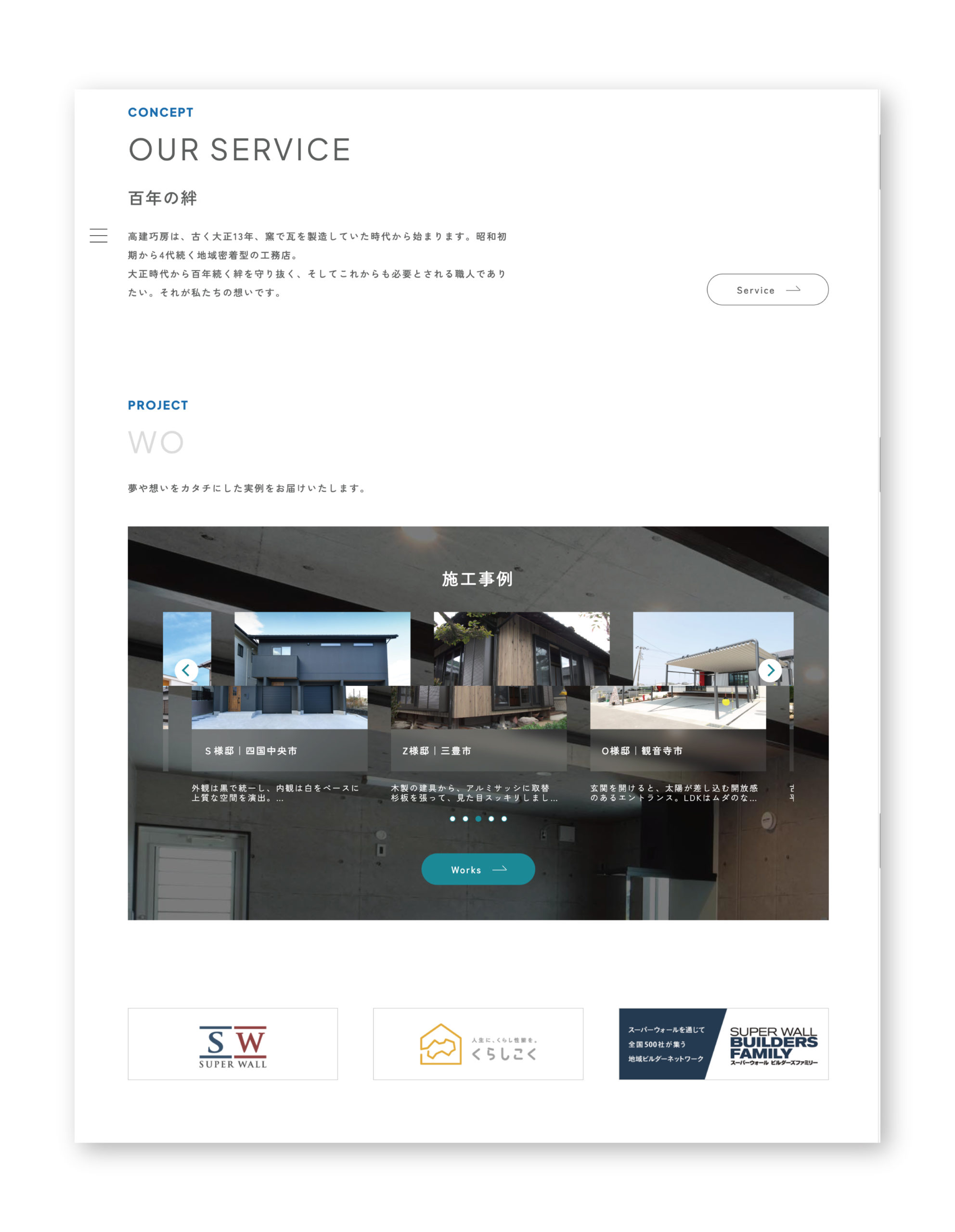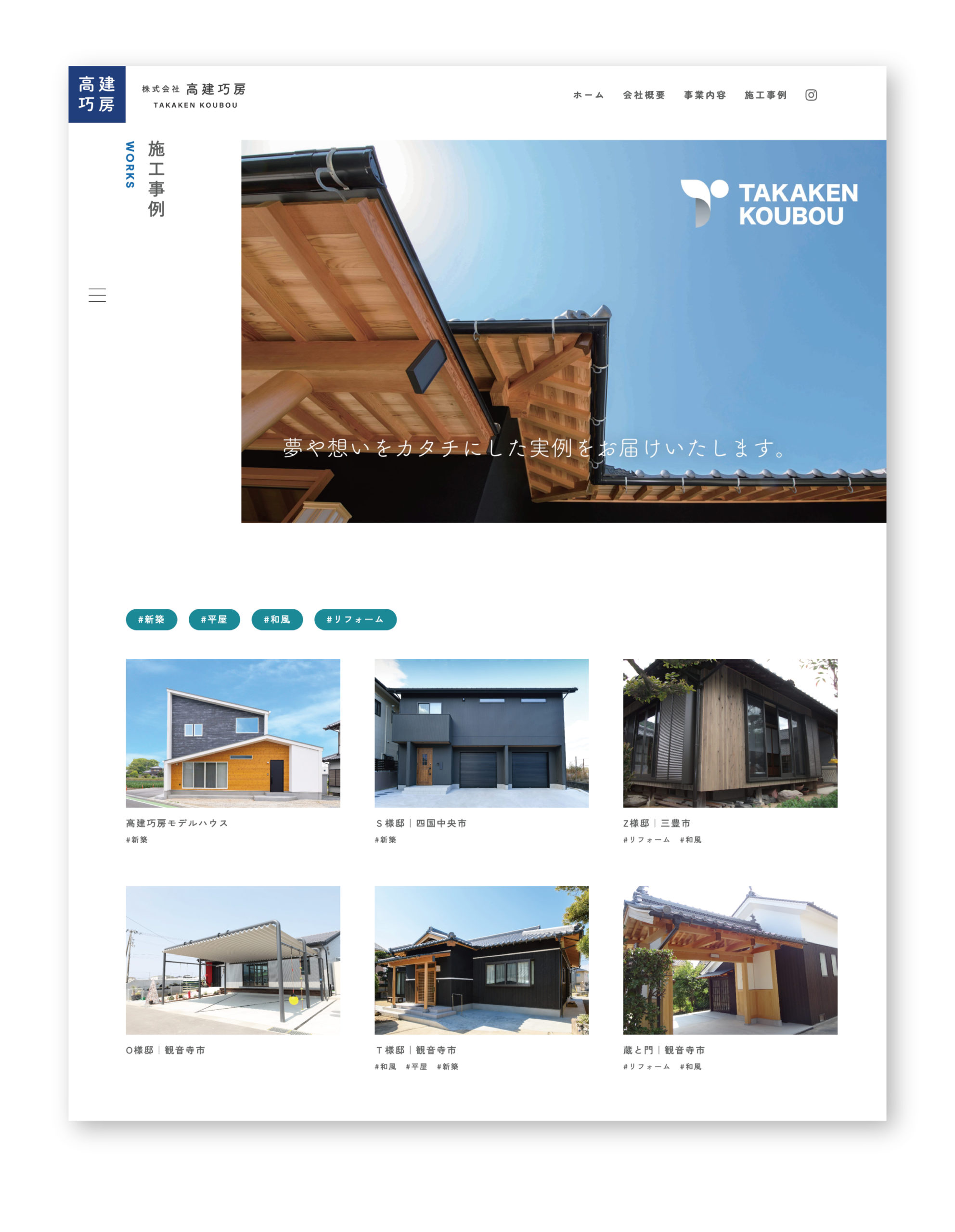 香川県観音寺市にある、地域に根ざした住まいづくりを展開する株式会社高建巧房様のコーポレートサイトを制作しました。