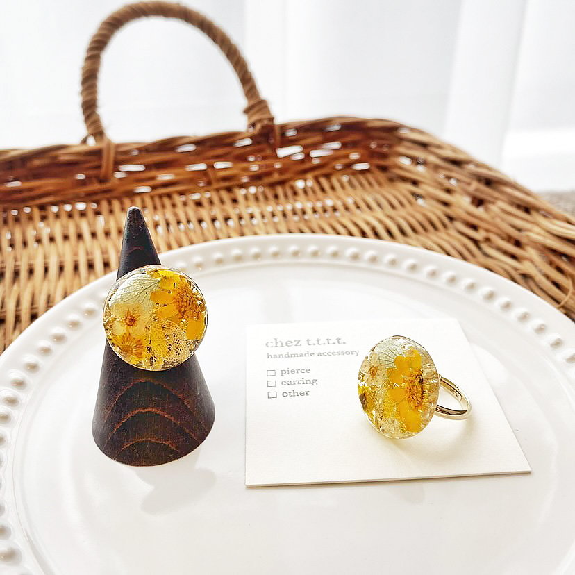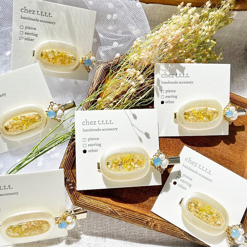 ピアスやイヤリング、ヘアゴムやクリップにと多岐にわたって制作している作家さん。