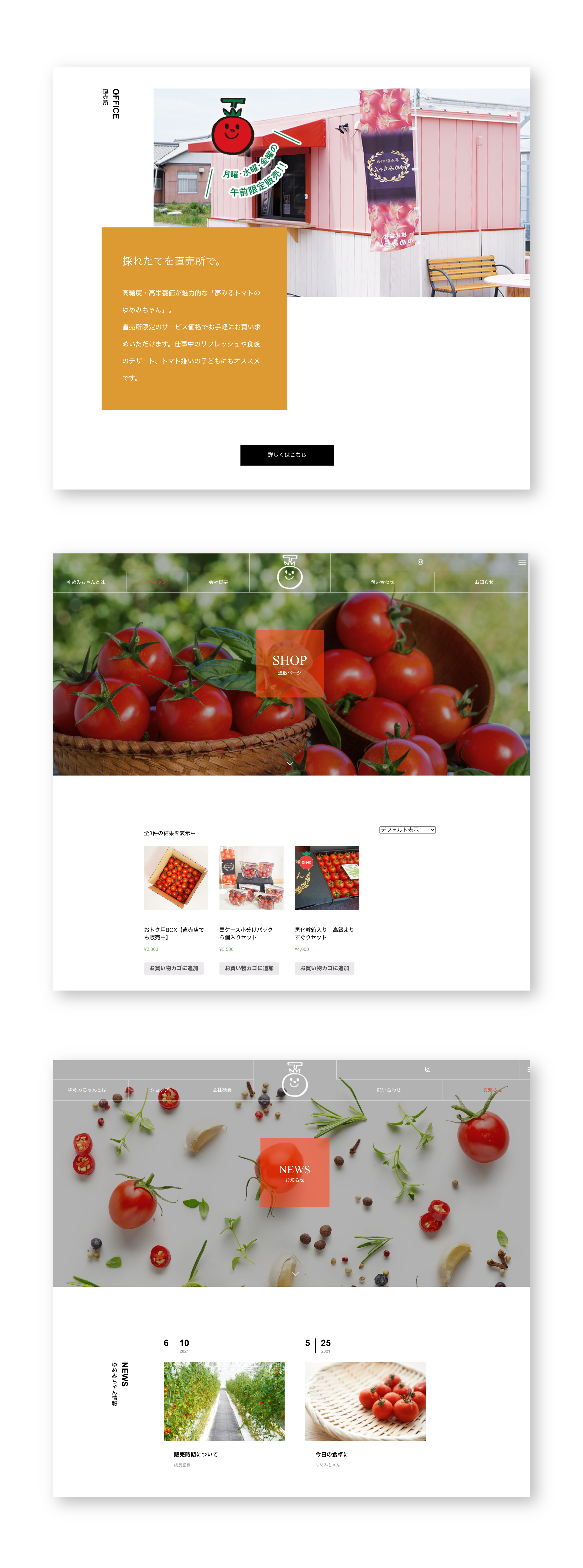 地方の片田舎で大切に育てた甘くて美味しい「夢みるトマトのゆめみちゃん」を食して頂きたいという思いを、より魅力的に伝えられるサイトを目指し、ロゴの制作、デザイン・全コンテンツの刷新を行いました。