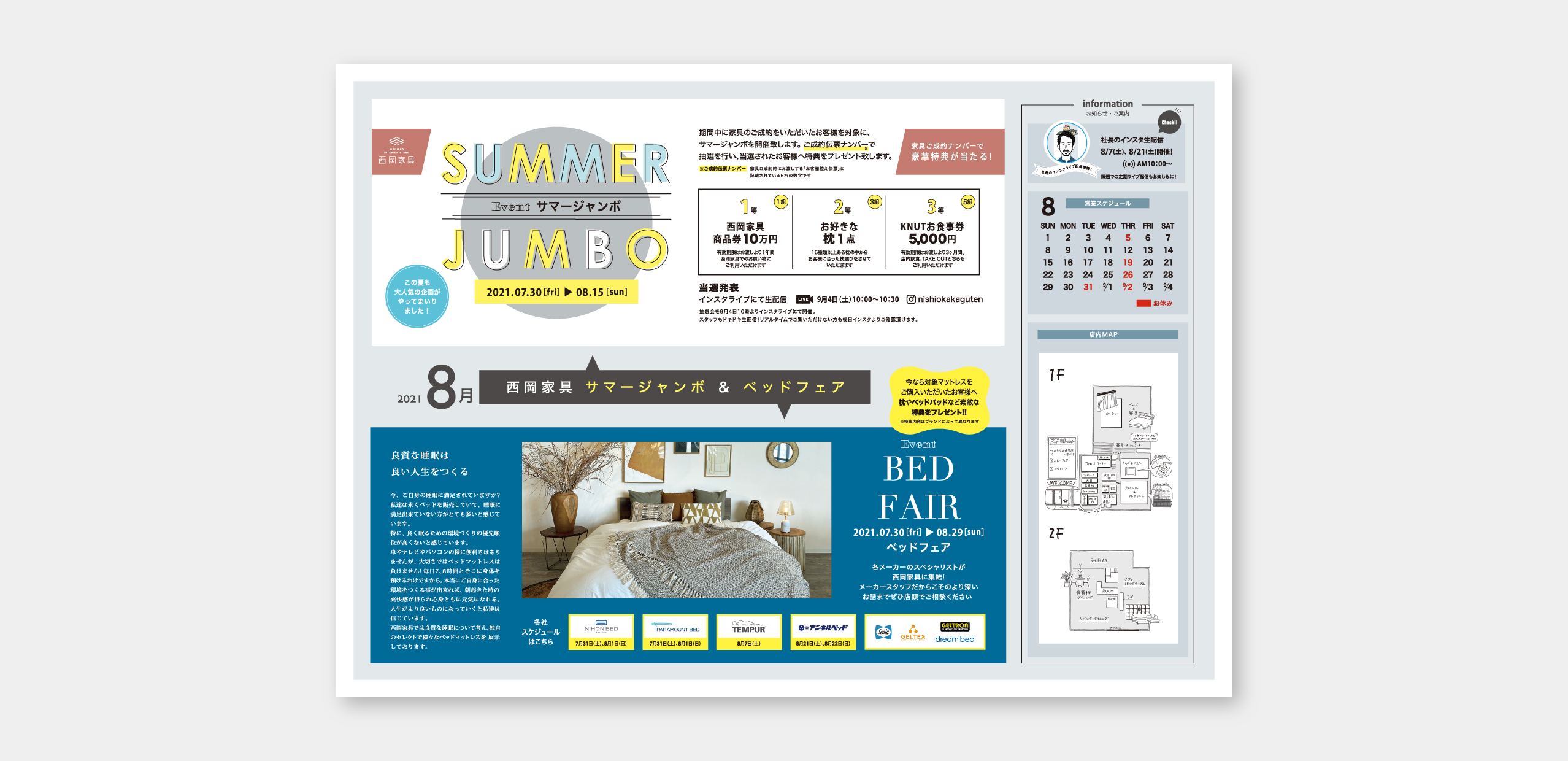 西岡家具店様が開催する「サマージャンボとベッドフェア」をメインとしたイベントを開催するにあたり