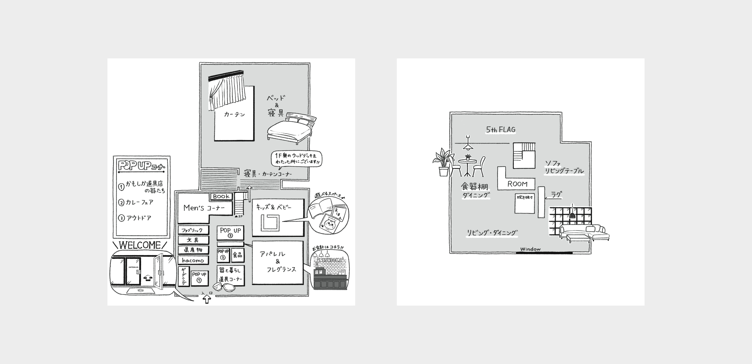 店内MAPをイラストにし、記憶に残る工夫をしています。