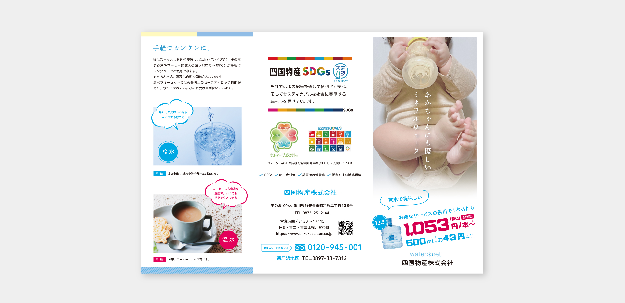 香川県観音寺市にある「四国物産株式会社様」の三つ折りパンフレットを作成させていただきました。