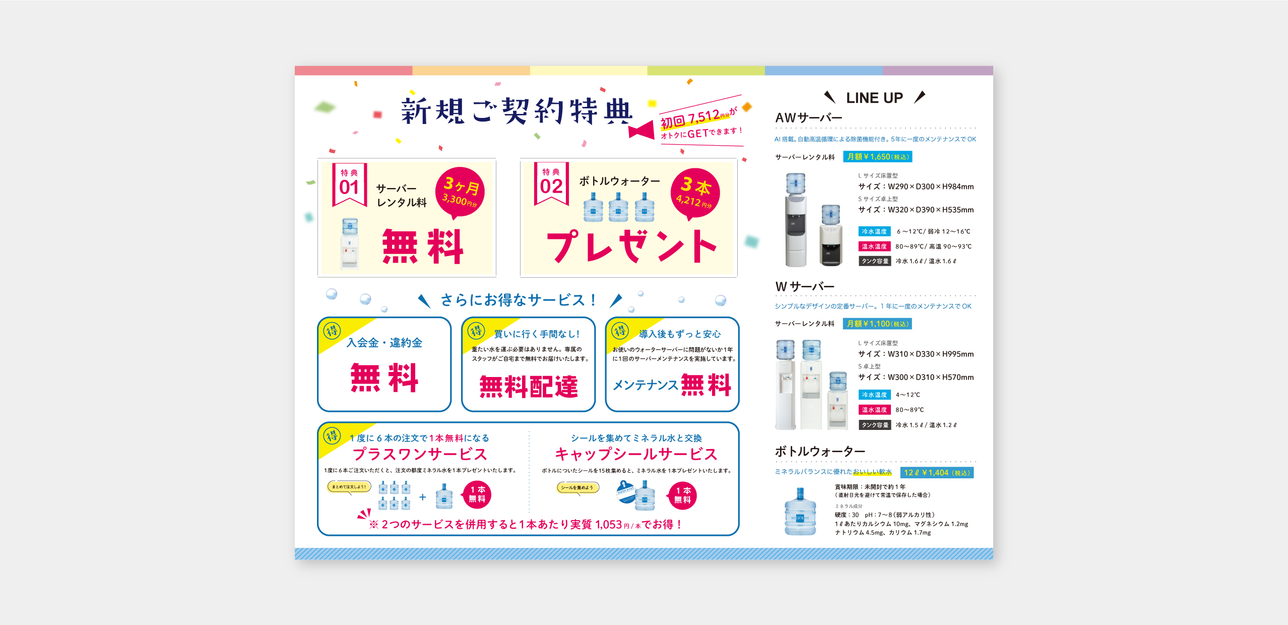 全体的に、ミネラルウォーターを身近に感じられるようPOPな印象に仕上げました。