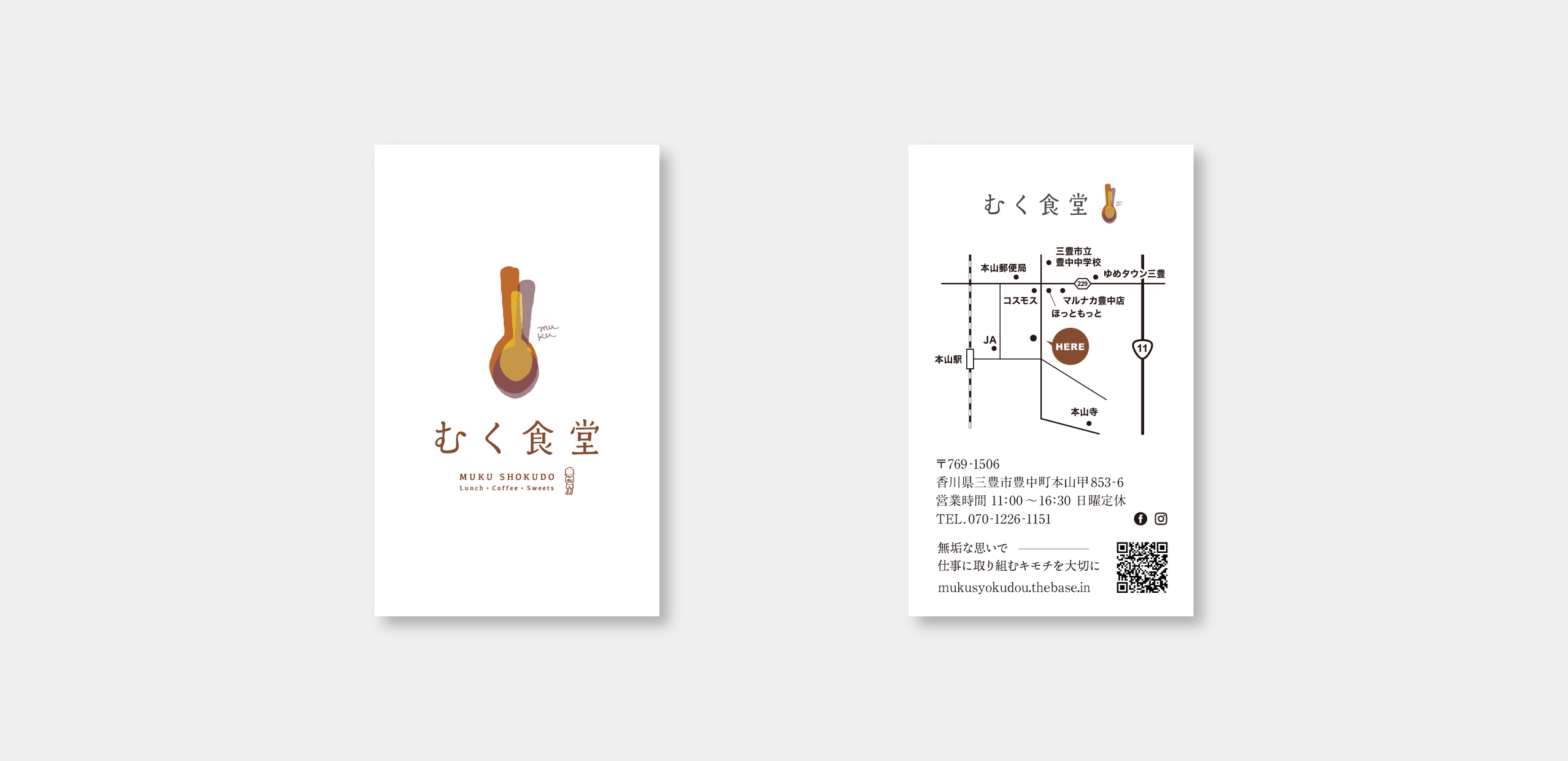 香川県三豊市にある「むく食堂様」のショップカードを作成させていただきました。
