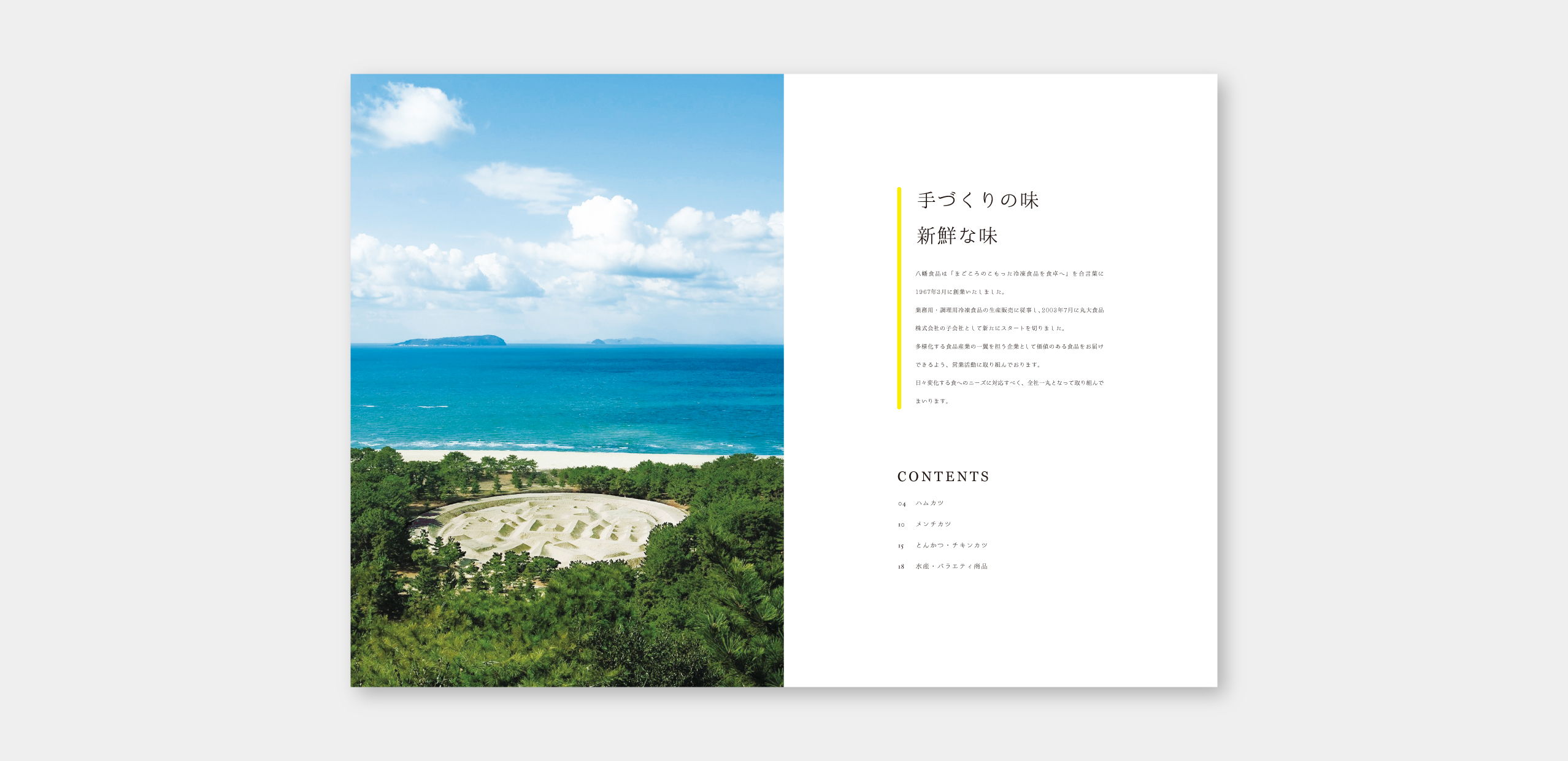 香川県観音寺市で冷凍食品の製造販売を手掛ける「八幡食品株式会社様」の総合カタログを制作しました。