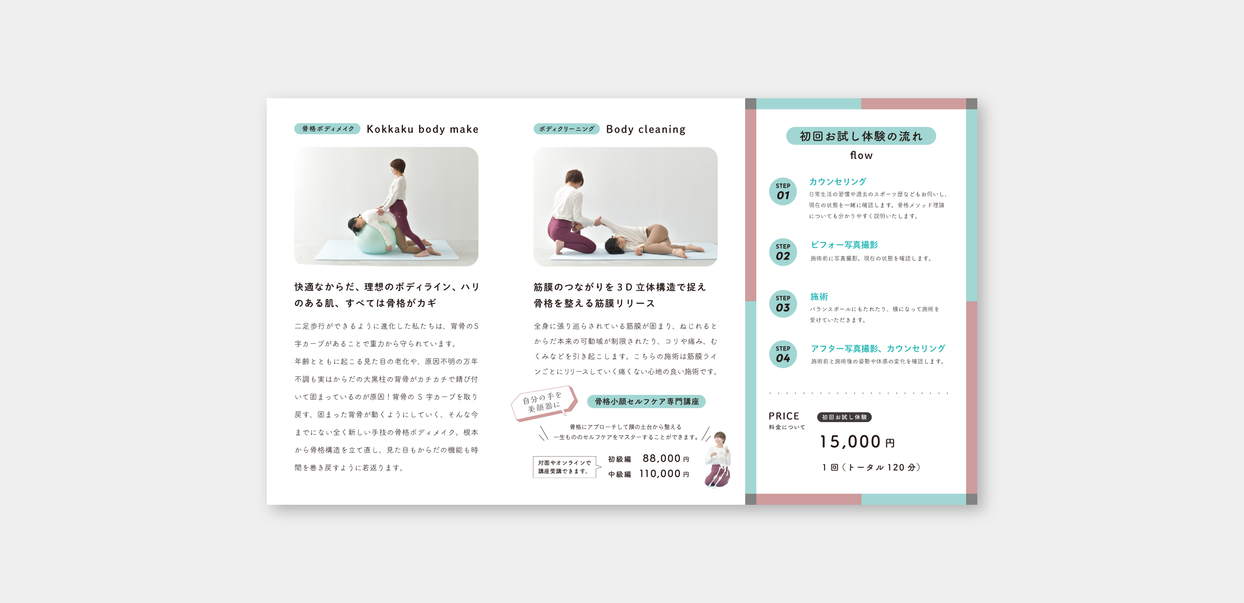 何度も打ち合わせを重ね、撮影からトータル的に担当させていただき、骨格ボディメイクを知ってもらえるきっかけづくりとして、すっきりとした印象にまとめました。
